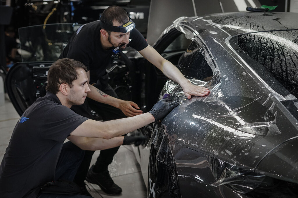 Фото процесса оклейки Porsche GT3 в полиуретановую пленку